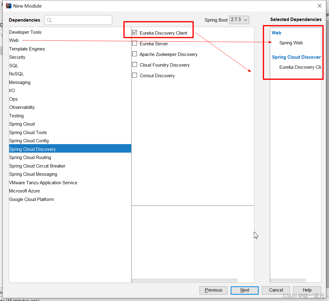1.选择springboot的web依赖,以及eureka-client的依赖