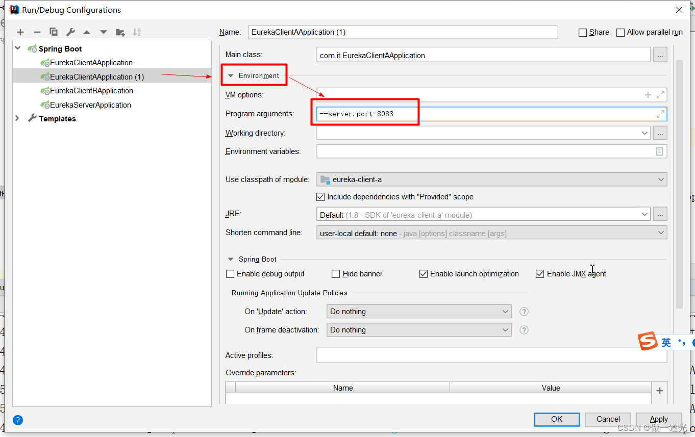 - SpringApplication.run(EurekaClientAApplication.class, args);