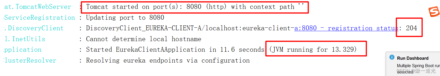 步骤同创建eureka-client-a相同,客户端端口命名为8081,运行项目,如下如所示表示启动成功。