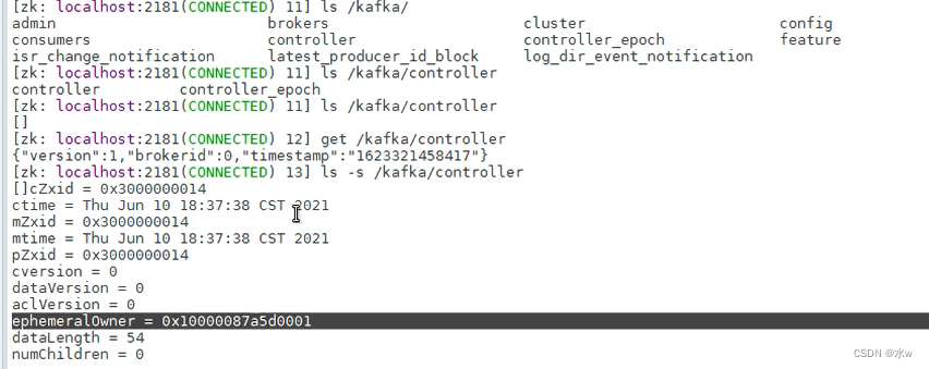 因为我们可以看到的节点当中,除了Controller,还有另外一个Controller-epoch选举版本号, 是控制器的选举操作。