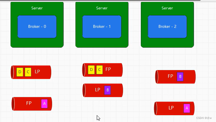 然后再轮询broker-2分区到其他分区broker-0,broker-1,进行存放。