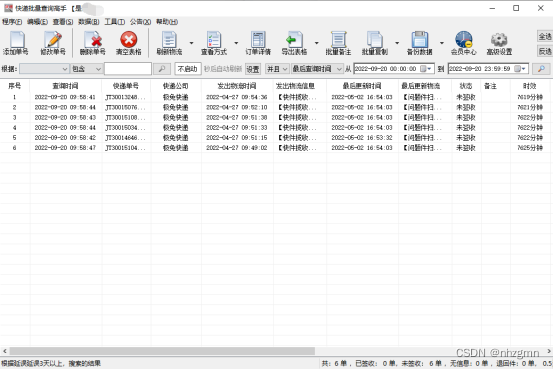 单号保存到软件中,看到进度条滚动说明物流信息正在一一查询。