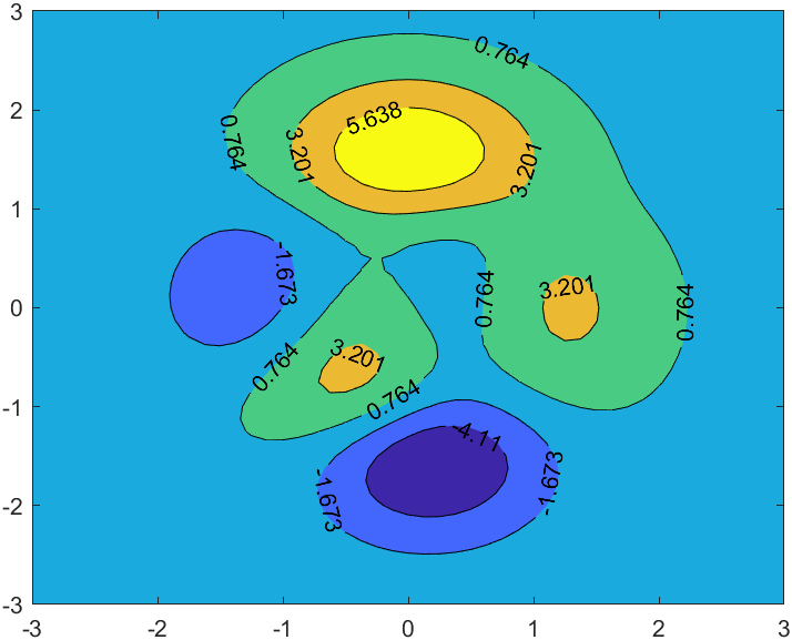 [c,h]=contourf(X,Y,Z,5,'ShowText','on');