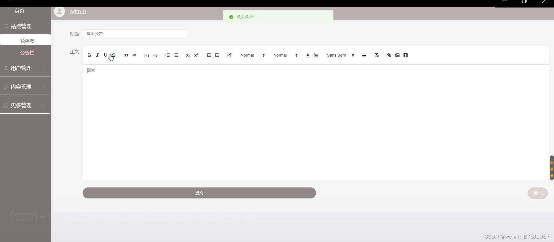 图5-3公告管理界面图