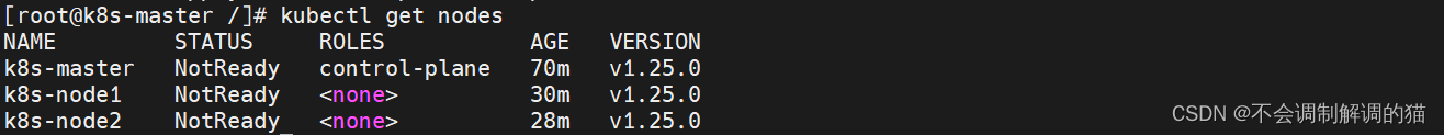 原因是加入节点的这个操作应该在 node 节点中进行,而不是在 Master 中执行。把它复制到另外两台机器中运行,效果如下: