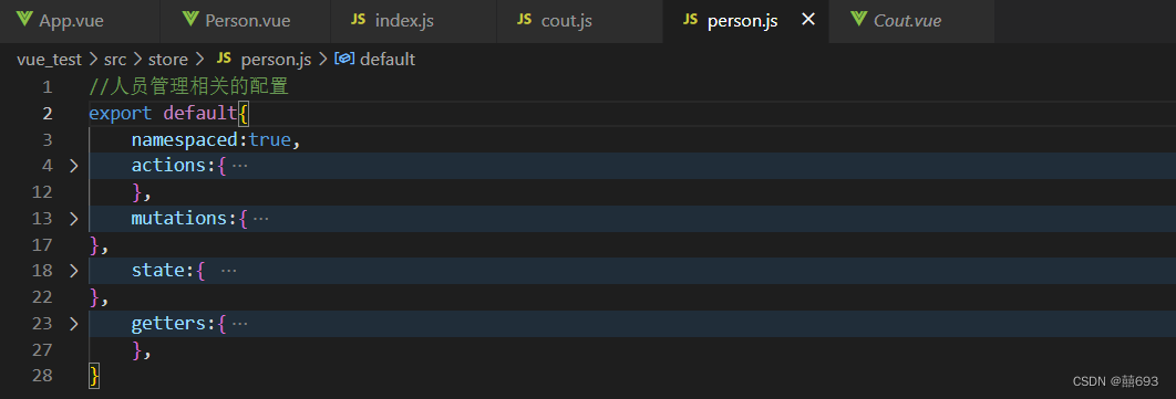 1.新建文件cout.js person.js ,把原本在index.js里面的东西细分到cout.js 和person.js 里面