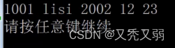 - 编号1001和姓名lisi都可以按照流程传参输出,但是birthday的d传到Date birthday处后,birthday作为Date的对象,理应调用Date的构造函数来输出初始年月日信息,但是在Date未进行参数初始化,无法进行赋初值输出(上面说了,因为程序员写了构造函数后不论有没有初始化参数,系统都不会再调用自己的构造函数提供默认值)