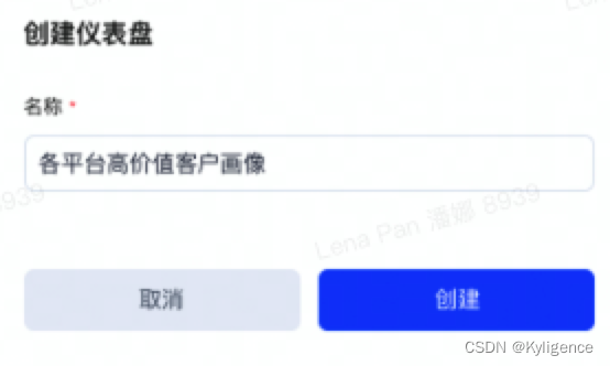 在 Kyligence Zen 的 仪表盘 页面,点击 新建 创建 各平台高价值客户画像 仪表盘: