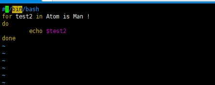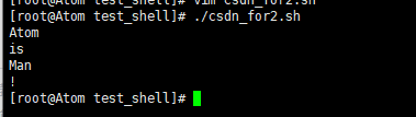 - for test2 in Atom is Man ! #遍历每个字符串的值给到test2