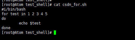 - for test in 1 2 3 4 5 #遍历列表里的所有值,并把值赋值给变量test