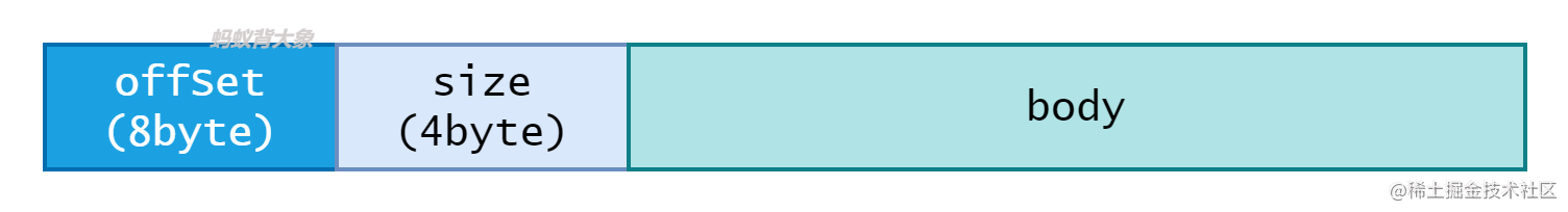分为头部和数据两大部分,头部包含了offSet和数据大小