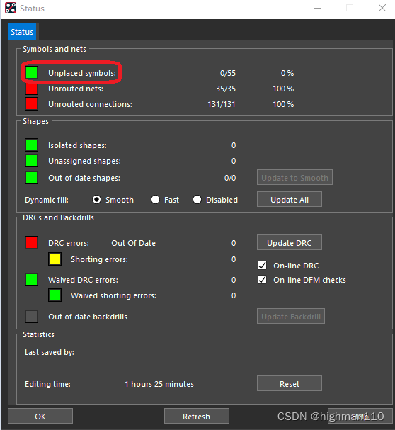 点击display-status,可以看到所有元器件都摆进去了。接下来就可以开始布局了。