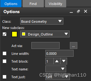 以上导入的dxf图的subclass并不是板框层,所以还不能成为板框,需要将此图改到design outline层。