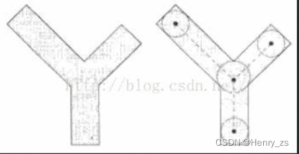 就是目标的前景像素点集合内部最大的内切圆盘,将所有的内切圆盘的圆心连起来就是骨架