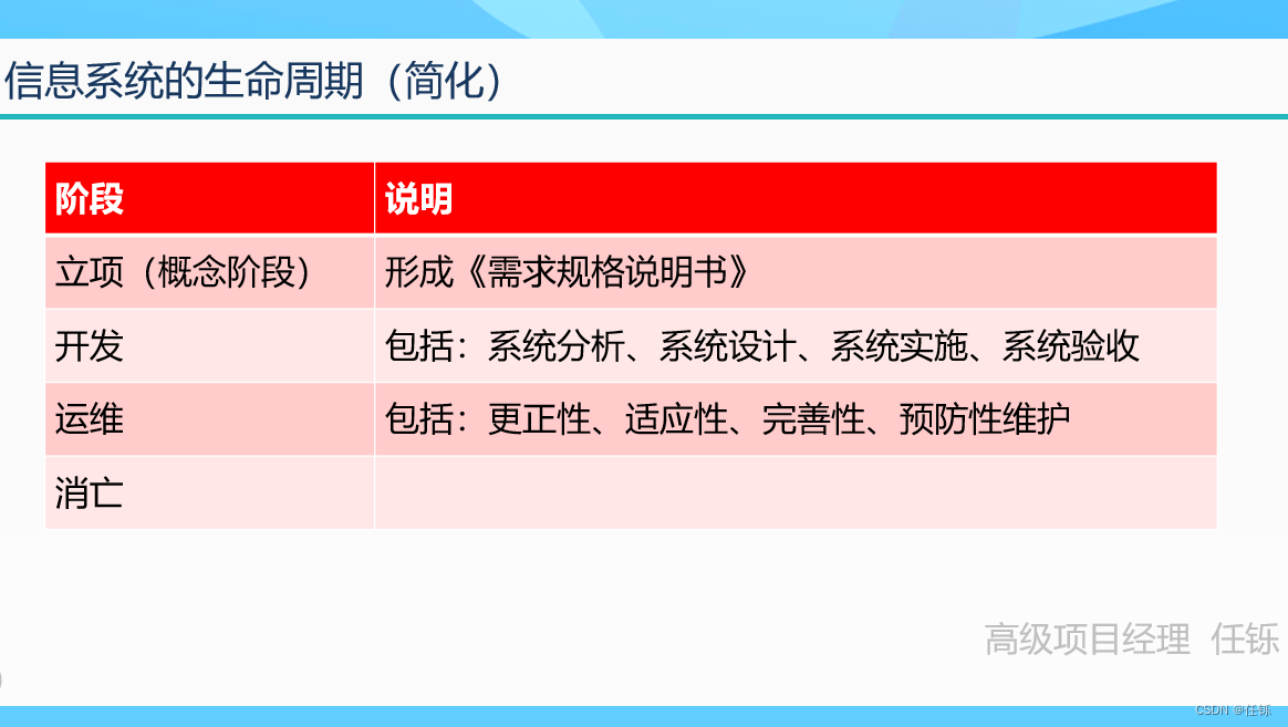 C.运维阶段验收系统并进行系统的维护 D.系统废弃重新建设预示着消亡阶段的开始