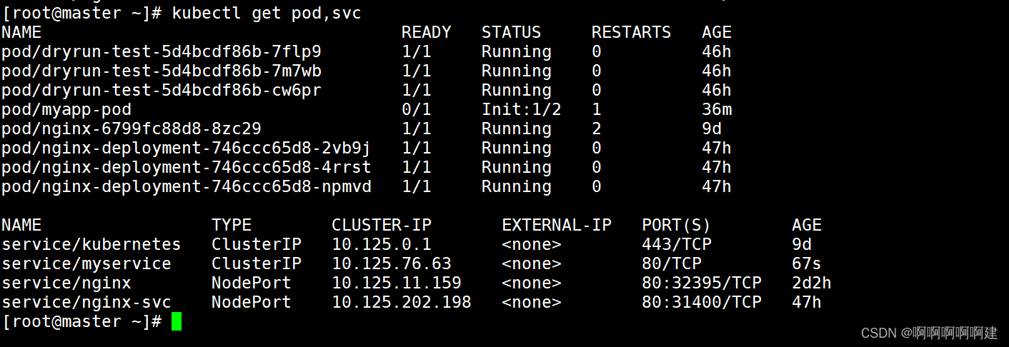 - [root@master ~]# vim myservice.yaml