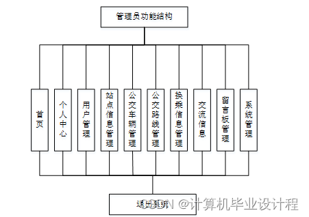 管理员登录系统后,可以对首页、个人中心、用户管理、站点信息管理、公交车辆管理、公交路线管理、换乘信息管理、交流信息、留言板管理、系统管理等功能模块进行相应操作,如图5-10所示。