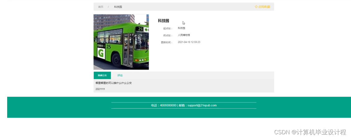 公交路线,在公交路线页面可以查看班次名称、公交车号、始发班次、末发班次、始发站点、终点站点、途径站点、更新时间等详细内容,如图5-4所示。
