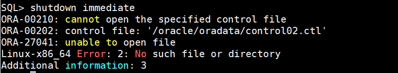 $ cp /oradata/CC/control01.ctl /oracle/oradata/control02.ctl