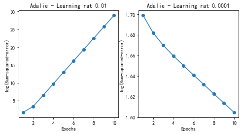 - ax[0].set_title('Adalie - Learning rat 0.01')
