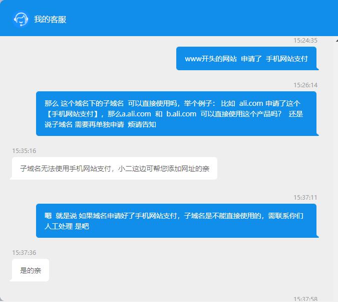 客服那边的回复是:子域名不支持直接使用,但也不用重新申请,联系支付宝客服,人工添加 就可以了。