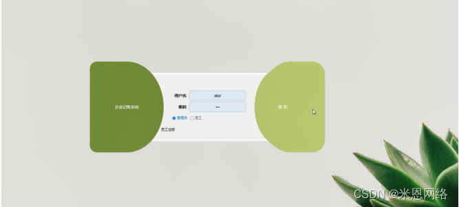 登录,管理员和员工进入系统前在登录页面根据要求填写用户名和密码,选择角色等信息,点击登录进行登录操作,如图5-1所示。