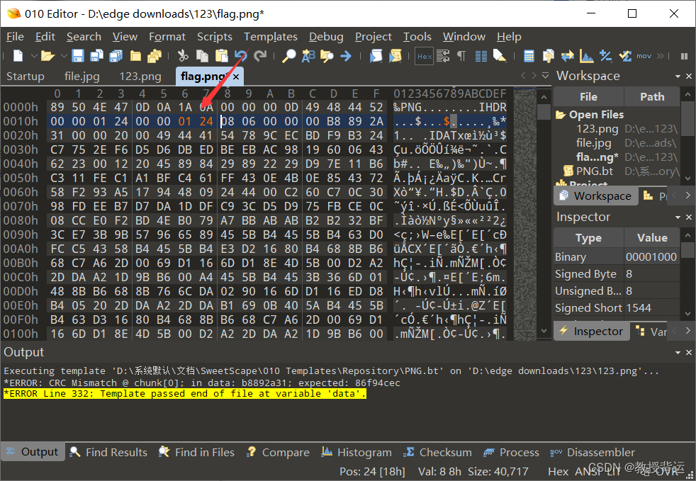 拖入010 editor打开,发现报了个错,用binwalk查看是否有包含