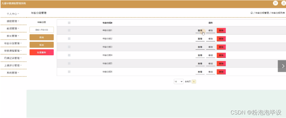 年龄分段管理,在年龄分段管理页面可以对年龄分段等内容进行查看、修改、删除等操作,如图5-6所示。