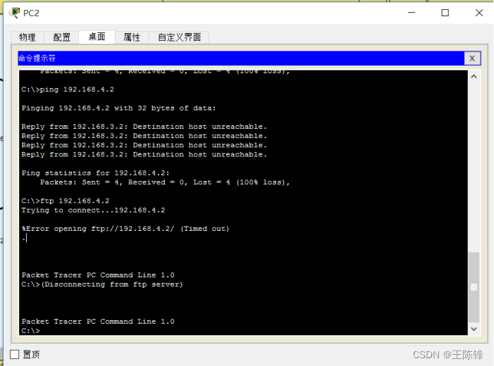 PC0 ping服务器是否连通? 否 是否可以使用FTP 否 是否可以访问WEB 可以 PC2 ping服务器是否连通? 否 是否可以使用FTP 否 是否可以访问WEB 可以