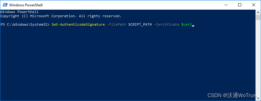 例如,对PowerShell脚本进行数字签名的命令如下所示: