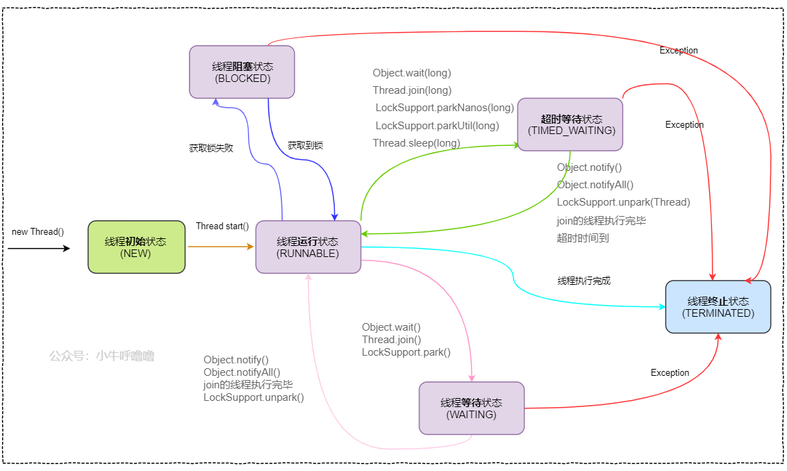 上图也是本文的大纲,我们下面依次聊聊java各个线程状态及其他们的转换。