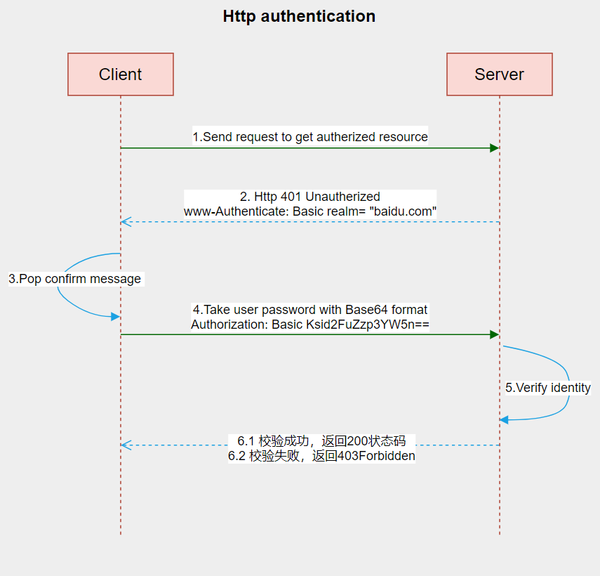 (3)客户端:服务器,我已经携带了用户名和密码给你了,你看一下;(注:如客户端是浏览器,那么此时会自动弹出一个弹窗,让用户输入用户名和密码);