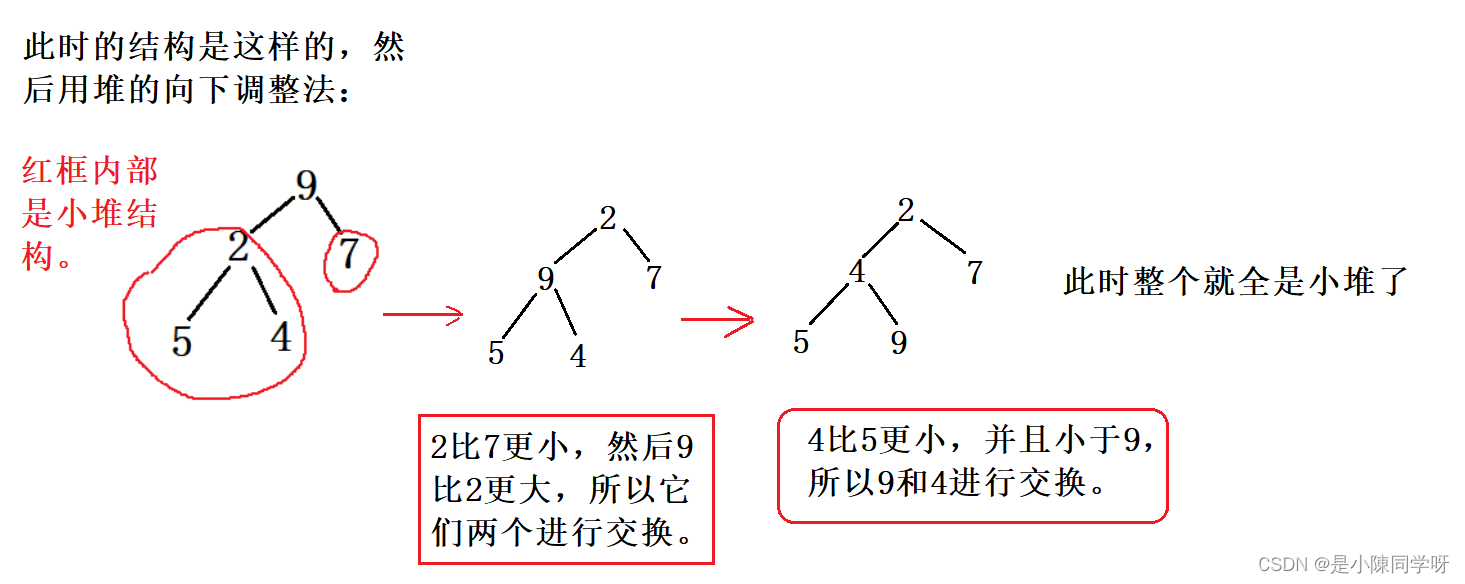 这里调的方法叫做堆的向下调整法: