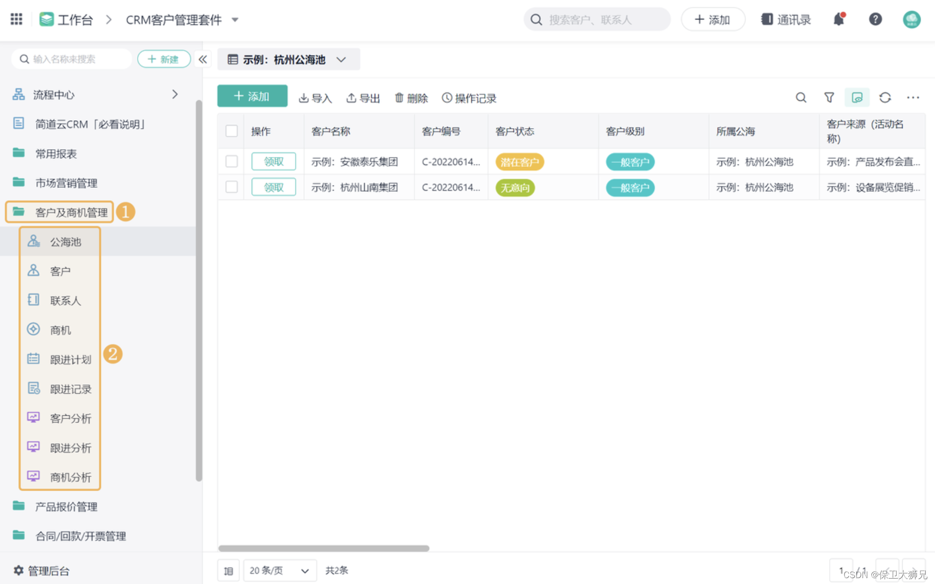 线索池:将各种渠道获得的销售线索进行统一整理,提升销售人员的工作效率,合理化规范化管理线索。