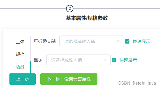 2)如下图:假如没有选择任何类型那么他就是一个单独的spu,但是当它选择了具体的颜色,版本,购买方式等等,那么他就是一个sku