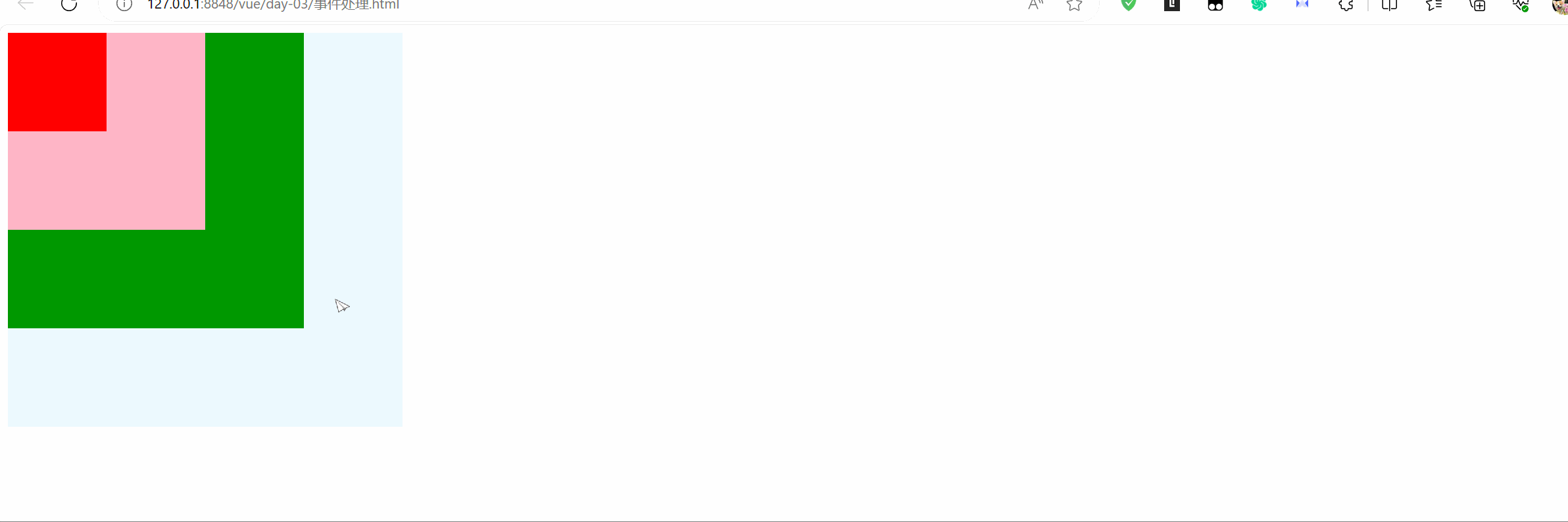 未处理事件前的演示效果