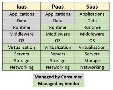 微软的 Azure 云服务有一张图,解释这三种模式的差异。