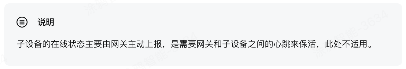 例如:设备设置的心跳周期是 60s,当设备断网 150s(60 × 2.5 = 150s)左右时,能观察到设备在云端是离线状态。