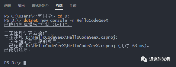 2、创建一个.NET 控制台应用程序: HelloCodeGeeX 命令如下: