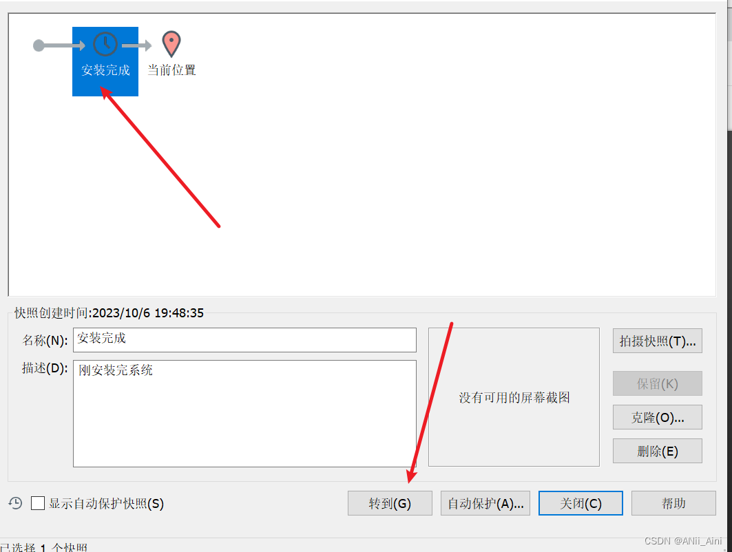 39,这样就完成了,如果以后系统被损坏了,或者想回到刚安装的样子们可以通过恢复快照来完成