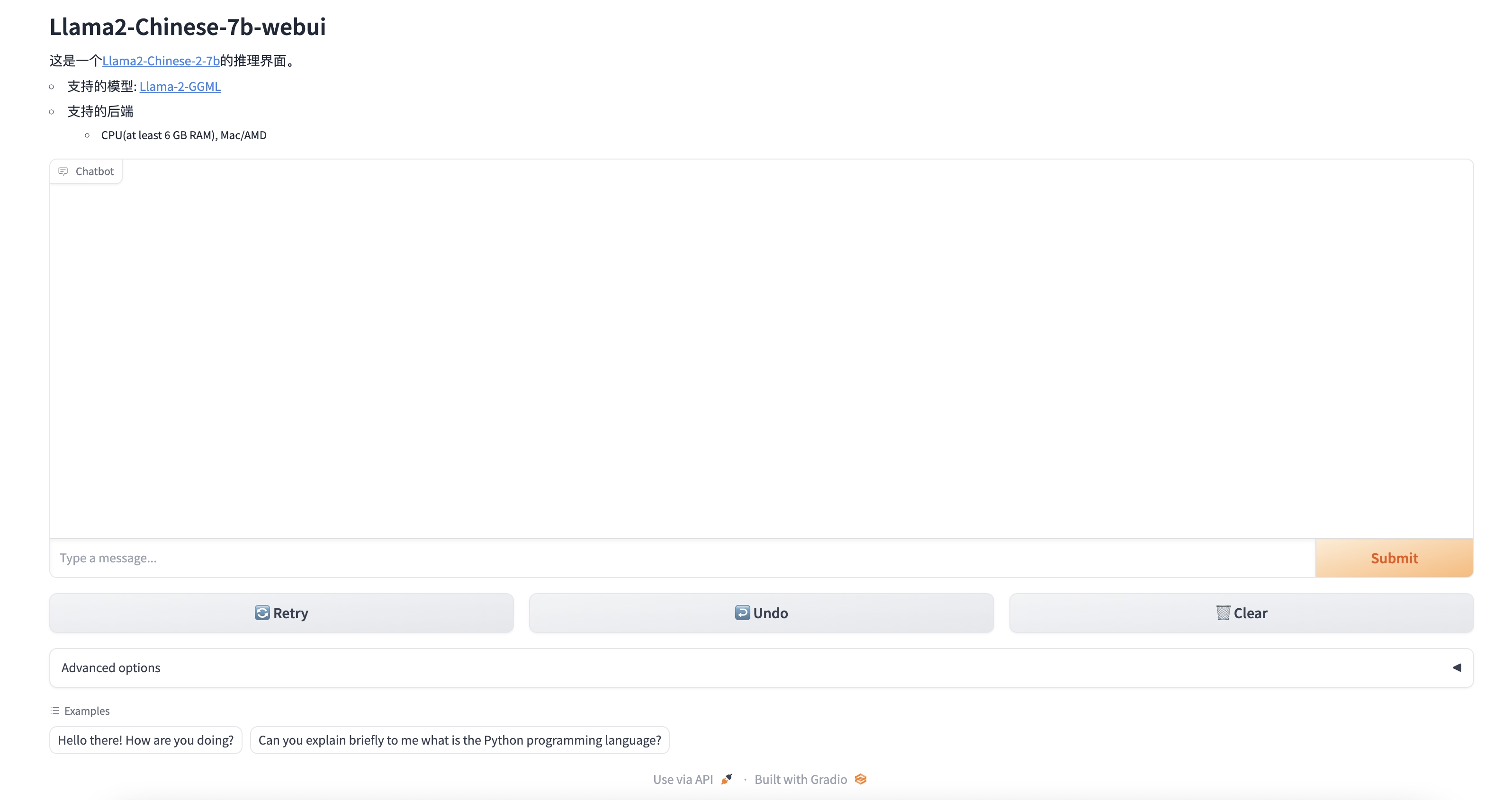python examples/chat_gradio.py --model_name_or_path FlagAlpha/Atom-7B