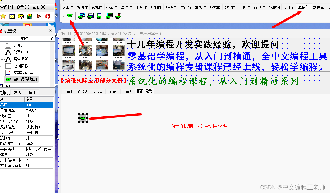 串行通信原理编程,中文编程工具中的串行通信构件,串行通信连接设置简单