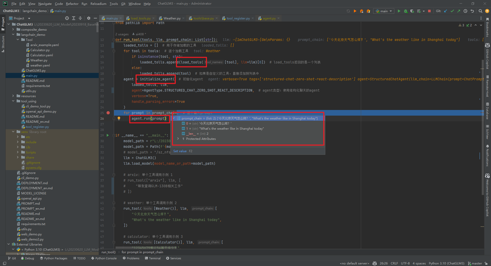 自定义天气查询工具调用,在main.py中导入Weather工具。如下所示: