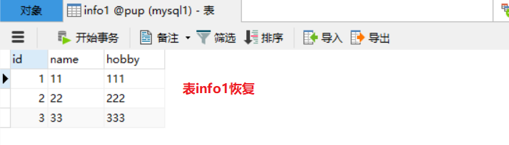 - [root@mysql1 data]# mysql -u root -p pup1 < /opt/pup_info1.sql