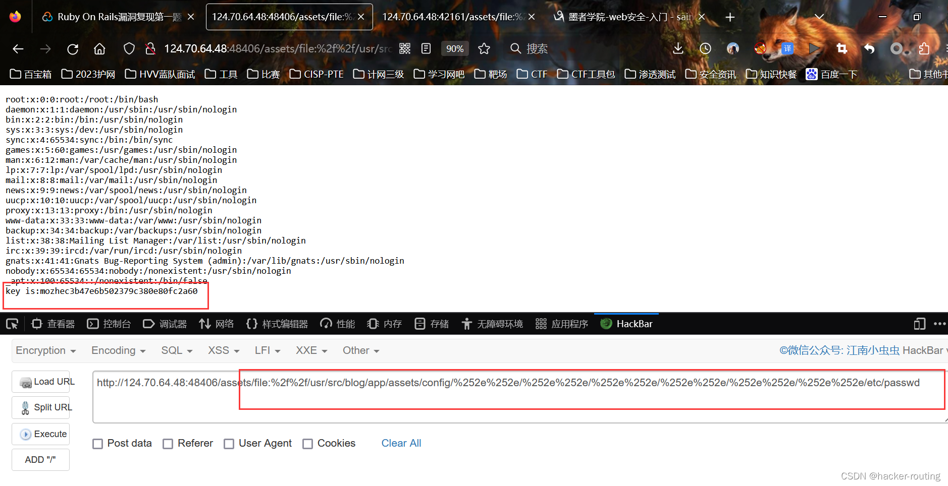 发现是Ruby,在Ruby 3.7.1和更低版本中,存在由辅助解码引起的路径遍历漏洞。攻击者可以使用%252e%252e/访问根目录并读取或执行目标服务器上的任何文件。可以先检测一下是否有此漏洞: