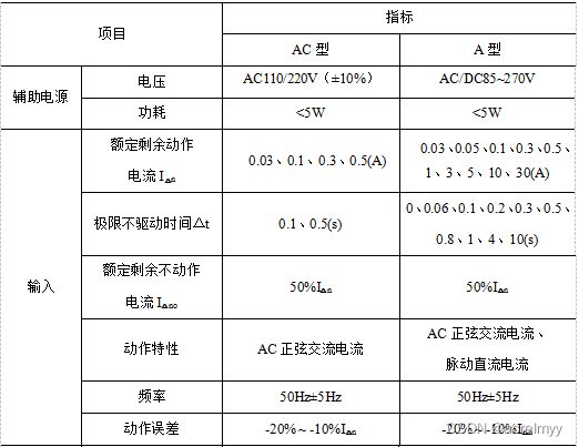 ASJ系列剩余电流动作继电器技术指标