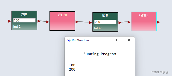 解决方案1:使用或并,使得每次进入行打印的数据只有一个,缺点:或并活动不等待,导致两个数据打印顺序不固定