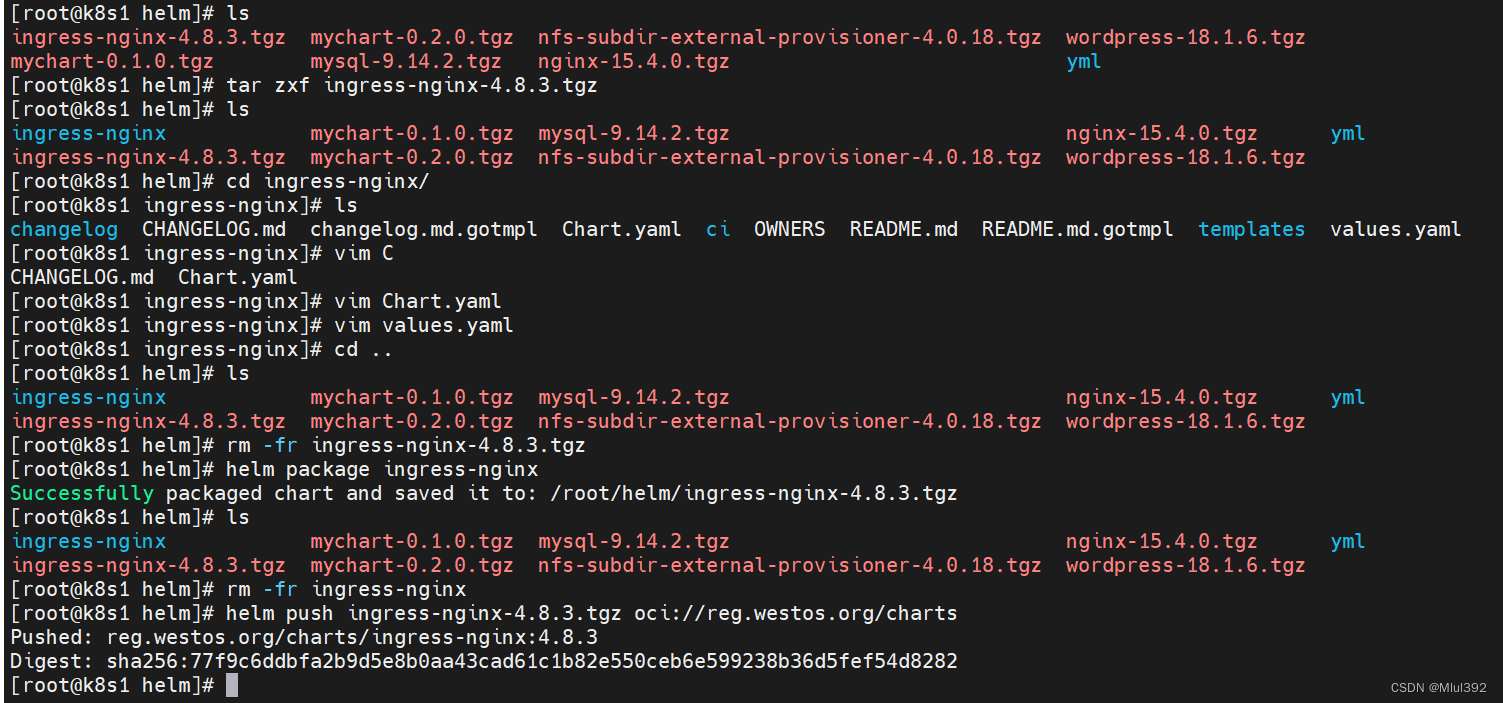 - helm push ingress-nginx-4.8.3.tgz oci://reg.westos.org/charts