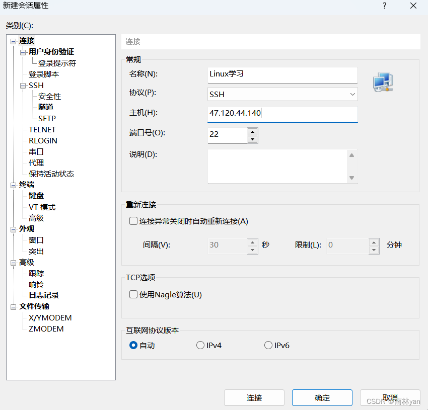 以后再次打开Xshell,直接选择Linux学习会话,输入密码后即可登录云服务器