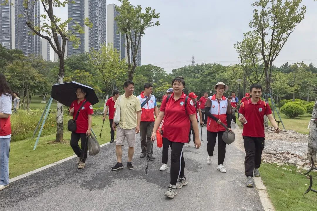 白云湖公园环境优美,路上也很干净,没什么垃圾,学员只能使出火眼金睛,“这里有个烟头!快拿垃圾袋过来。”“那里好像有一块纸巾,走,过去看看。”沿着斜坡一路往白云阁走,“哇!这有一片花海!”这边赏花那边拍照,稍微逗留一下又继续出发,一路走走停停,路上还向游客宣传垃圾分类知识,游玩、环保两不误。